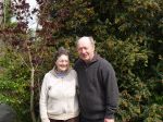 After picking up my rental, whom I christened Peg, and making my way out of the DublinAirport, I headed South and West, destination Ballybrittas, Co Laois. and a long overdue catch-up visit with my friends Brigid & Michael Dempsey, owners of a Dairy farm and Abbeyview Cottage, a self-catering thatched cottage. Having arrived early, I was on the road two hours ahead of schedule, thus I wound my way from Naas, through the Curragh, into Kildare and then Monasterevin, where I stopped to see an old friend and take a few pictures before continuing on to my visit.It is odd how some things seem to stay in a collective community memory. In Monasterevin, it became obvious that the Cowboys in their midst three summers ago had left an indelible impression.As I strolled through the town, photographing the Gerard Manley Hopkins Statue, the Cherry Blossoms, and the Church, I was greeted with waves and handshakes and a hearty "One of the Cowboys have come back!" by most everyone with whom I crossed paths.I lingered in Monasterevin for an hour, marveling in the quiet of an early Saturday morning. The shops hadn't opened and there wasn't much road traffic. I did go into the church and light a candle in thanks for a safe journey.Onwards down the road I went, about 15 minutes to the turn-off for Brigid & Michael's. It was such a joy to drive familiar roads. Pulling into the farmyard, I felt a sense of homecoming.Even though I was two hours early, Brigid met me at the door with a smile and a long, warm hug before shooing me into the front room for a cuppa and a chat whilst we waited for Michael to come in from the barns. What a feast was laid, home made currant scones, brown bread and a Rhubarb Tart! When Michael came in, it was more hugs, laughter and catching up. The two hours sped by and I soon found myself rising to leave. Michael and Brigid showed me around their garden, in which the rooster strutted and posed in all his feathered glory. Of course, I had to see the new calves and reconnect with my four-legged pal Maxie before I could leave. The number of farm yard dogs as definitely increased from just Maxie, to Maxie & Twink and now two of Maxie's pups and a Bruno. They of course were delighted to see me, none more so than Maxie, who fell in at my side as I had trained her to do in 2006. There were more hugs and a prayer for safe travels and then I was off to Fore Abbey.