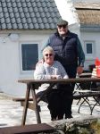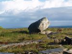We had asked Maura to ring up for a van to take us into Kilronan. John Flaherty picked us up in short order. Not only did he take us into Kilronan, he also gave Karen and Dave a grand tour. Because of Karen's hip problems, Dun Aengus & the Black Fort were not viable options this time over. John did drive them up towards Dun Aengus so that they might see it. He then took the side road to Na Seacht Teampall, the Seven Churches. As he drove down the side road, he pointed out that they had just had a film crew on the island filming a "major production". That certainly gives us something to ponder. John let us out at the gate to the Seven Churches and then went to turn his van around and wait. Just outside the gate, we encountered and Aran man and his dogs. He was standing with a pike pole and his bicycle. Karen felt compelled to take his picture. I had to photograph his dog. I think that Karen & Dave enjoyed their wanderings through Na Seacht Teampall. Seven Churches is an ancient Monastic settlement. It has two churches and several outbuildings along with ancient gravestones and an ogham stone. Once we were through at Na Seacht Teampall, John took us over the top Coast road to show them the Lighthouse. He then turned around and went back down the Coast road towards Kilronan. He stopped at the Seal Colony so that we could get some pictures. The seals looked to be enjoying the sunshine that had made its way out and chased away the rains.