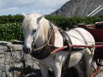 John left us off in Kilronan after arranging to pick us up at three to bring us back to the Cottages. We wandered down the Aran Sweater market and spent some time choosing scarves and socks for a few of Karen's people back home. I found a great deal on the Aran Sweaters and wanted to pick one up for a friend. I didn't know her size though so I called her up in Idaho.Yes, it was quite early but, after a brief moment of panic, she was quite happy to help me out with a size. Karen and Dave were darlings for helping me choose the colors and pattern. After the shopping was done, we walked a short ways down toward te Pier hoping to find the Tourist Office open so that Karen could pick up some brochures. They were closed for lunch. The sign on the door indicated that they would be opening in a few minutes. I had my doubts but left Karen and Dave resting on a stone wall whilst I took some photographs ofthe boats in the harbor, the Ponies harnessed in their traps and caught up with some of the Jarveymen. After giving them ten minutes to open, the three of us decided that lunch was in order. I took them to my favorite Fish & Chips place for lunch. I can never remember its name but it sits right across from the American Bar and has much better food for less money. A bit of a laugh whilst ordering came when Dave ordered Cod for Karen and was told that there was no Cod and that she could have the Pollock instead. Dave wasn't sure that was a good choice but I assured him that she would enjoy the Pollock. I knew that the Pollock would be fresh caught form the morning runs. I also knew that even though they showed Cod on their menu board, it was rarely available. Karen did enjoy her Pollock and the heaping amount of fries which came with it. After wards, I talked them into sharing a piece of decadent chocolate cake. We finished up just as John was pulling up to collect us.