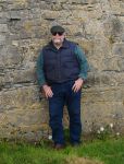 We had asked Maura to ring up for a van to take us into Kilronan. John Flaherty picked us up in short order. Not only did he take us into Kilronan, he also gave Karen and Dave a grand tour. Because of Karen's hip problems, Dun Aengus & the Black Fort were not viable options this time over. John did drive them up towards Dun Aengus so that they might see it. He then took the side road to Na Seacht Teampall, the Seven Churches. As he drove down the side road, he pointed out that they had just had a film crew on the island filming a "major production". That certainly gives us something to ponder. John let us out at the gate to the Seven Churches and then went to turn his van around and wait. Just outside the gate, we encountered and Aran man and his dogs. He was standing with a pike pole and his bicycle. Karen felt compelled to take his picture. I had to photograph his dog. I think that Karen & Dave enjoyed their wanderings through Na Seacht Teampall. Seven Churches is an ancient Monastic settlement. It has two churches and several outbuildings along with ancient gravestones and an ogham stone. Once we were through at Na Seacht Teampall, John took us over the top Coast road to show them the Lighthouse. He then turned around and went back down the Coast road towards Kilronan. He stopped at the Seal Colony so that we could get some pictures. The seals looked to be enjoying the sunshine that had made its way out and chased away the rains.