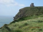 Started the day with breakfast. Denise gave us the best breakfast we had in Ireland. The white and black pudding was home made and outstanding. We left Dingle and went over Conner pass. Pic's # 1,2,3. It is absolutely brillant and a must see. If you are going to the Dingle Penisula you have to do Conner pass. The 4th pic is the road going down the other side towards Tralee. We headed to Tarbert island ferry. We got there just after the ferry left. Oh well it gave us some time to stretch our legs. We took the ferry across the Shannon river (saving us about 80miles). When we reached the other side a sign said Killmurry McMahon 1 klm. Since our last name is McMahon and my ancesters came from the county of Clare we decided to take a detour. When we got there it was a general store with a post office inside. My wife asked if this was all of the town. The lady behind the counter said it wasn't a town it was a parish. Not sure what a parish is in Ireland but here it is and area that a church covers. Sue (my wife) told her our last name was McMahon and the lady said then you need to go up the hill to the cemetary. So we did and found many McMahon's buried there. But have no idea if they are related. Ok back on the road and to our itinerary. We head towards Loop Head Penisula. We visit Carrigaholt Castle pic's 5 &6. This castle was built by the McMahon's. Next we are off to the Cliffs of Moher with one stop before we get there. We stop to Doonbeg to see the ruins of Doonbeg Castle (once owned by the McMahon's) pic #7
